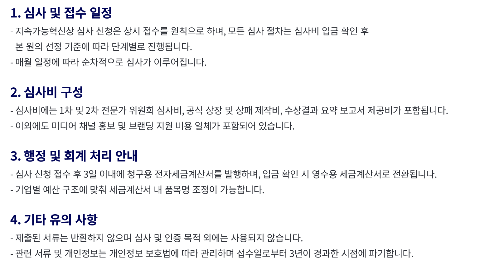 접수 안내 및 유의사항